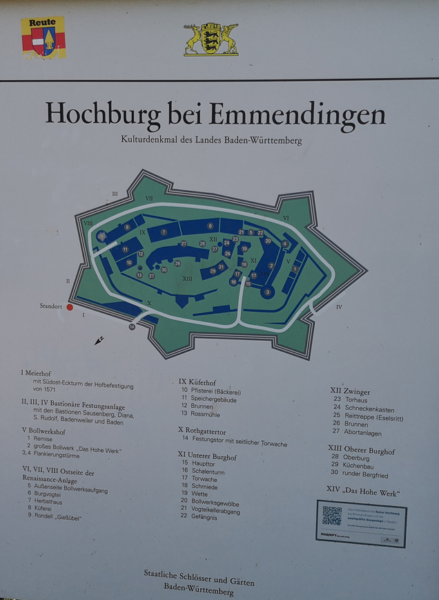 Auch wenn wir nicht optimal vorbereitet waren (nächstes Mal sollten wir wirklich vorher mal googlen …), erwischten wir dieses Schmuckstück auf der Strecke nach Freiburg. Aufgrund eines Hinweises auf der Autobahn hat die Beifahrerin kurz recherchiert und nachdem es hieß „… eines der größten …“ war das beschlossene Sache, dass wir auf dem Heimweg da mal rausfahren! Und siehe da, laut Wikipedia ist die Hochburg sogar nach dem Heidelberger Schloss die zweitgrößte Burganlage Ba-Wüs!