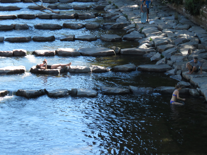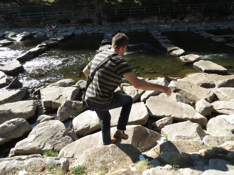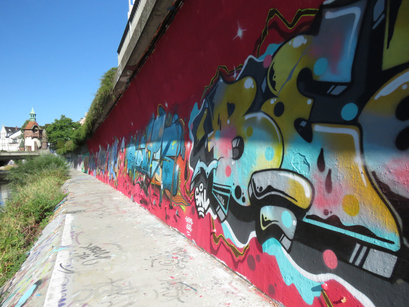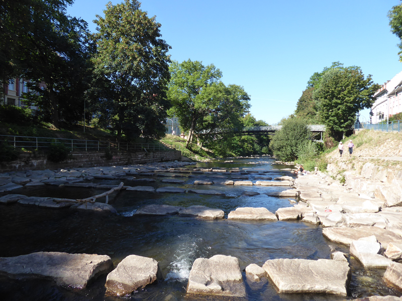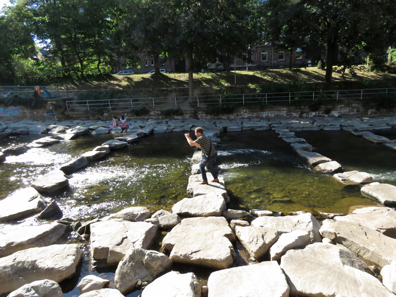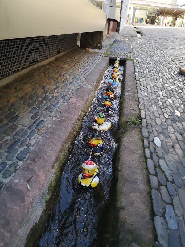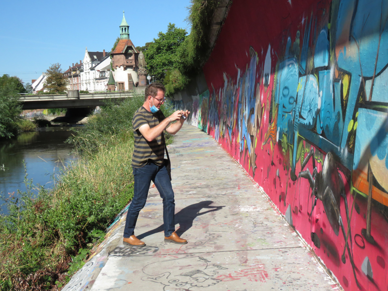 Wir fanden ein Parkhaus, prägten es uns gut ein (äh … Schlossberg, ne? Neee, Schwabentor! … oder?), konnten es aber eigentlich gar nicht verfehlen, weil es uns direkt an der Dreisam rausschmiss, einem unglaublich malerischen Flüßchen, mit allerlei Wildlife. Noch nie waren wir Graureihern und Enten so nah!