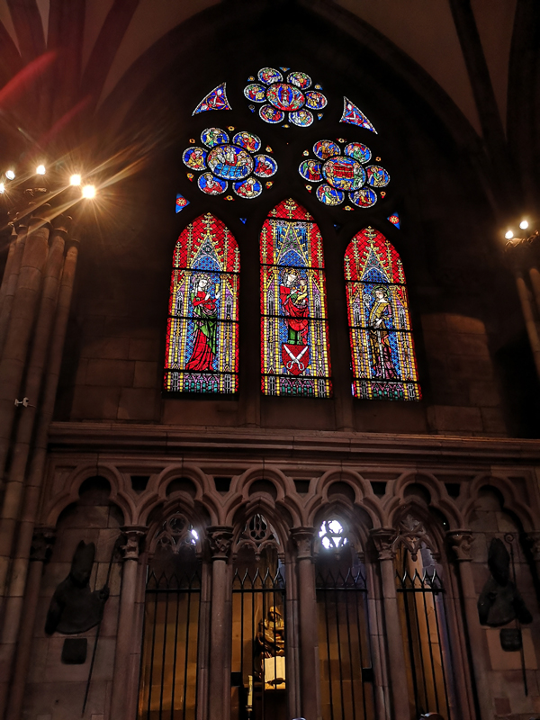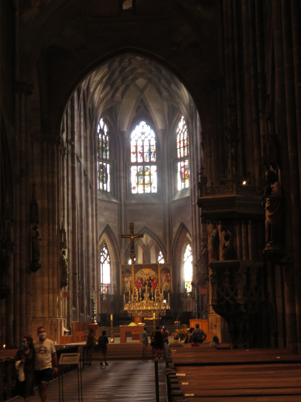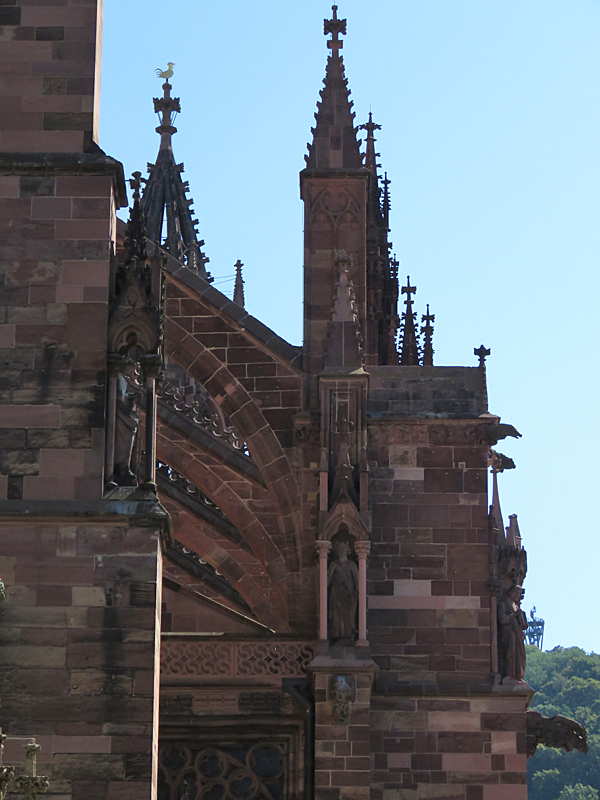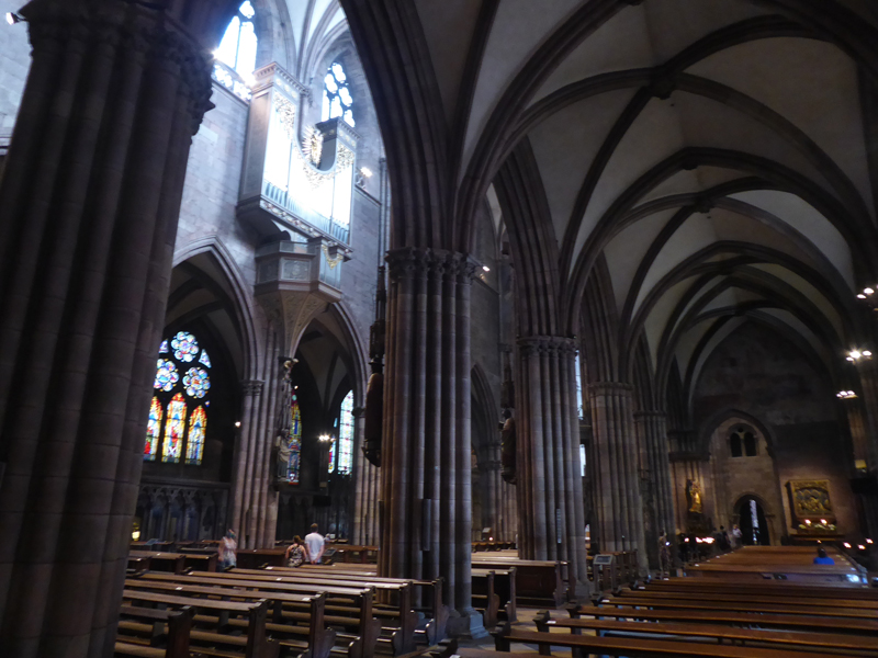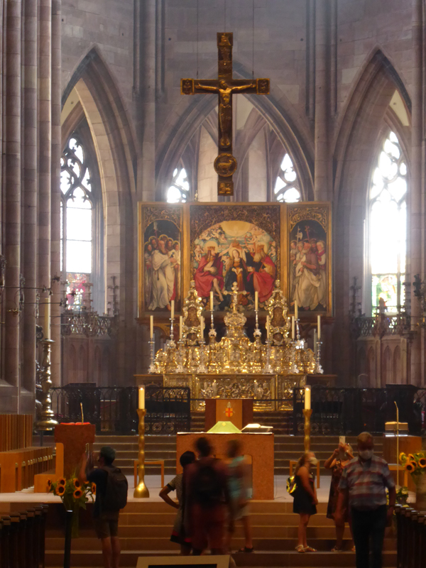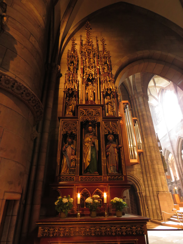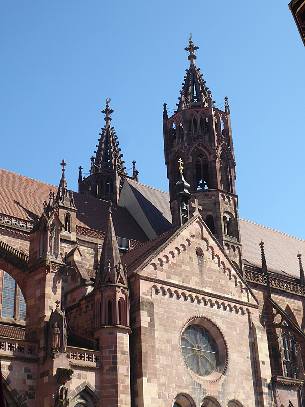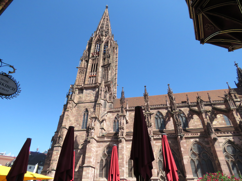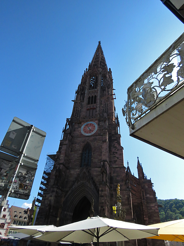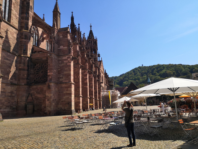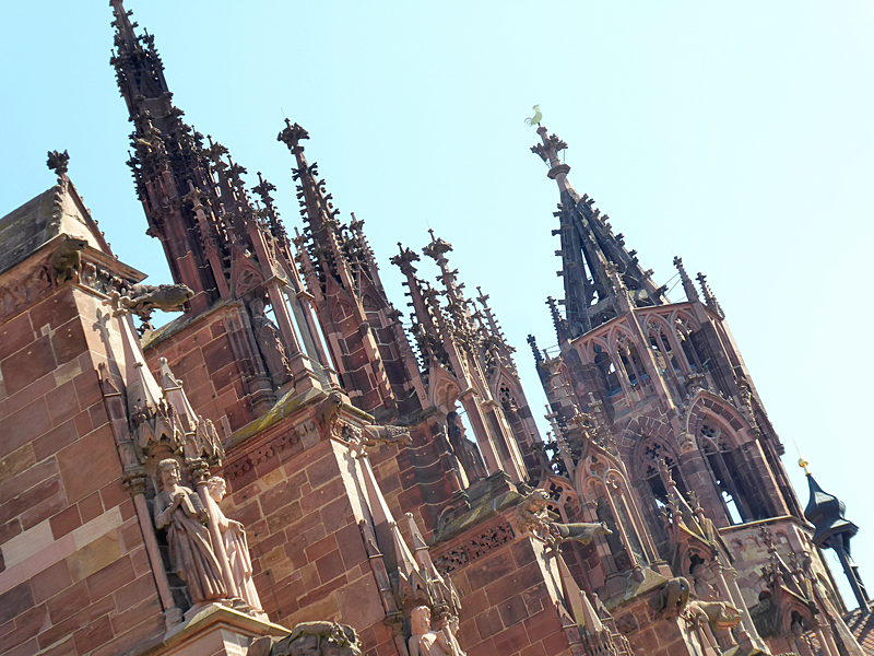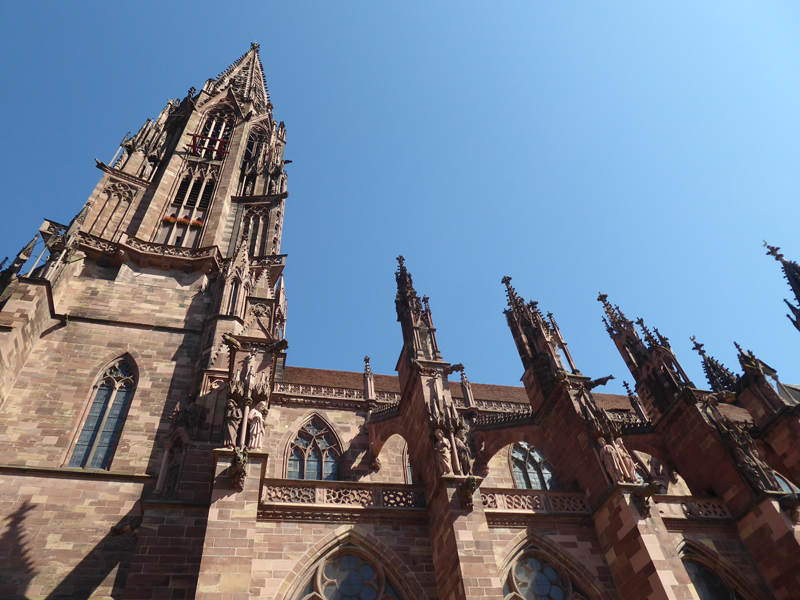 Weiter ging es dann Richtung Freiburger Münster, das in seiner Wirkung auf zumindest mich dem Strasbourger Münster kaum nachstand – beides echte Monumentalmonsterbauten. Hier durften wir auch ohne Warteschlange hinein!