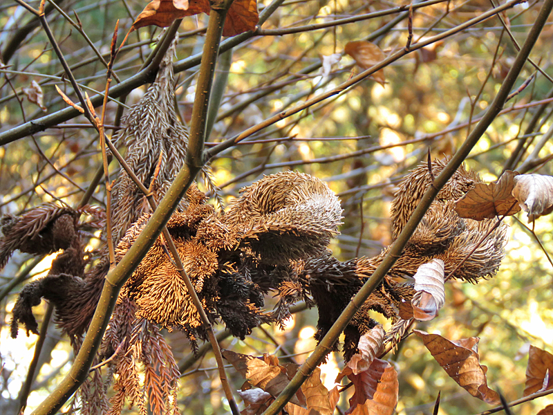 In der Tat sind die Attraktionen etwas überschaubarer, als im Sommer, dafür gab es wunderbare Herbstfärbungen unter anderem beim Ginkgo oder spektakuläre Verwachsungen (Verbänderungen) bei der Sicheltanne Cryptomeria japonica cristata