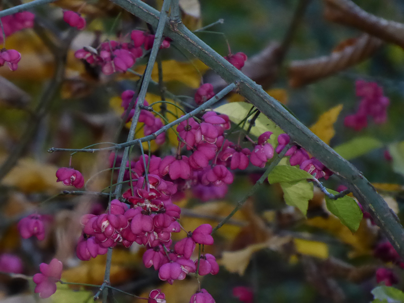 Dafür sieht man da nicht unbedingt den verwunschenen Prinzen, läuft am Eukalyptus stumpf vorbei, beachtet vor lauter Blüten die Blutbuche kaum und Pfaffenhütchen und die Samen von Pseudotaxus chienii gibt es dann auch nicht.