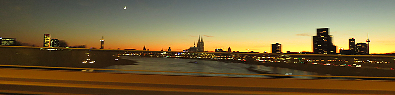 Gleichbleibend schön ist auf der Heimfahrt aber die Kölner Skyline …