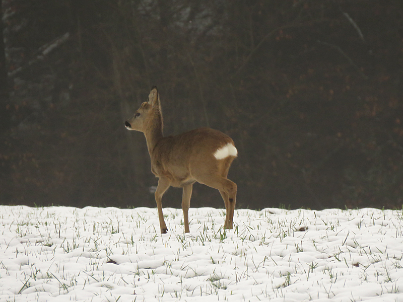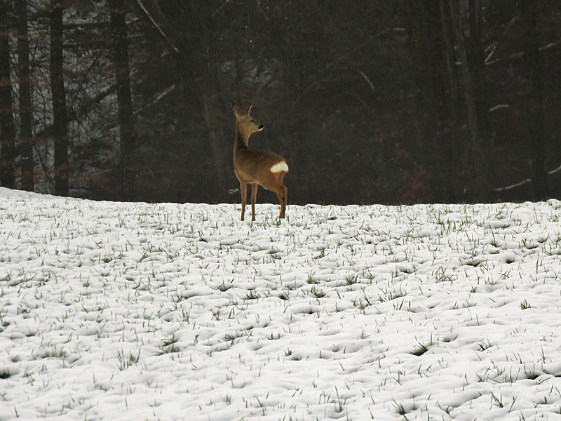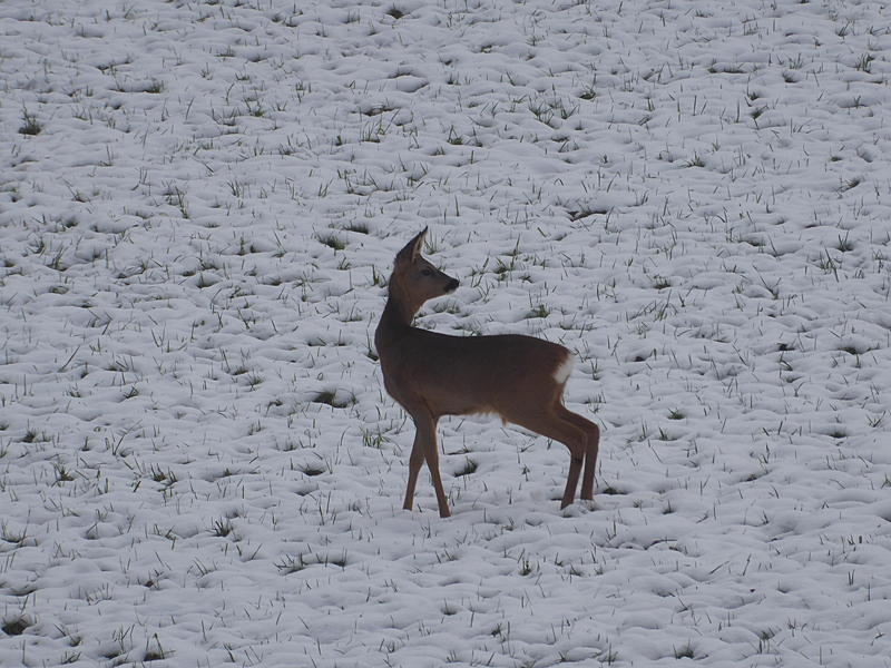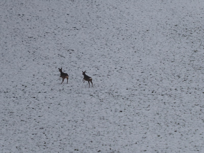 Sonntag war es noch kälter. Egal, wir haben uns wieder rausgewagt und waren sogar einen ganzen Kilometer länger unterwegs!!! Und eigentlich war es schon wieder schön! Und diesmal haben wir die Rehe auch photographiert und nicht nur bestaunt!