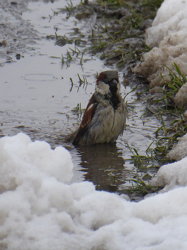Aber die eigentliche Sensation ereilte uns in Form unerschrockener badender Sperlinge – glaubt ihr (Diskussion im Hause! P beharrt auf Großschreibung und FÜGT sich …) nicht? Guckstdu …!