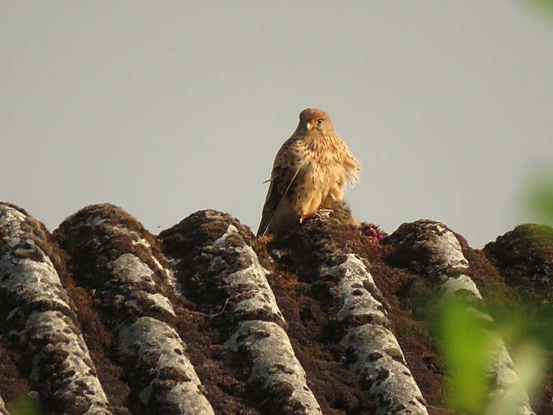 Attentat im Habitat – im April noch gut zu erkennenTurmfalken-Rüde, grauer KopfTurmfalken-Ricke, brauner Kopfdie Stare gucken schon ganz starrdie Milane kreisender Bussard schwebt erhabenund der Mond hat den vollen Überblick