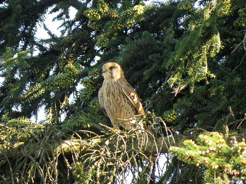 Die ehedem Elstern-Fichte mutiert zur Arche … man glaubt es kaum, aber ein Turmfalken-Paar bemächtigte sich des Habitats!