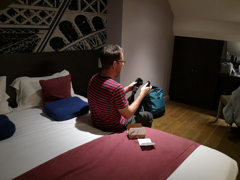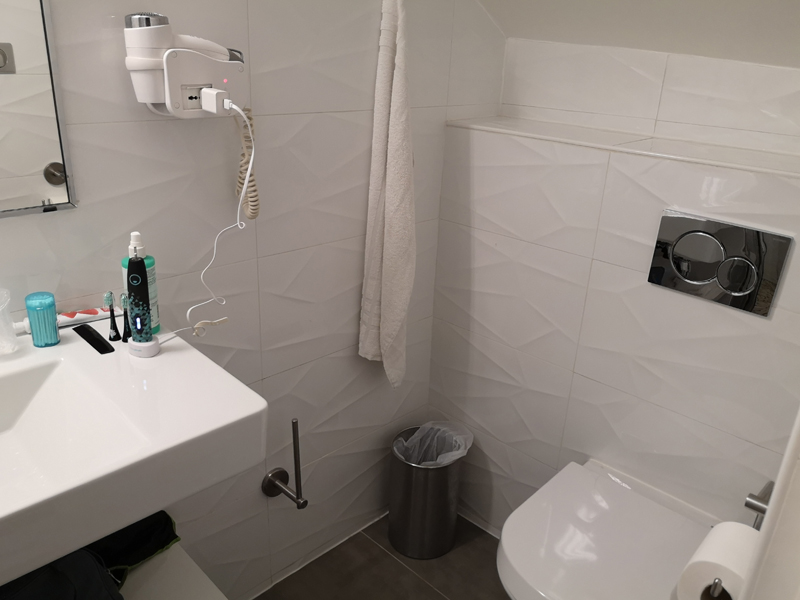 Die sehr überschaubare Dachkammer (selbst schuld, wir wollten ein möglichst ruhiges Zimmer!) wurde durch die von P vehement (!) an der Rezeption reklamierte Nespresso-Maschine etwas aufgewertet.