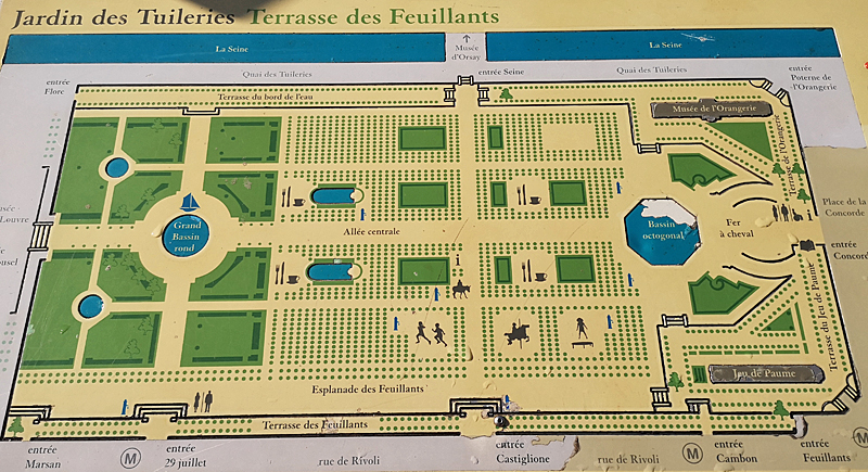 Und schon standen wir vor dem Eingang zu den Tuilerien. Diese Gartenanlage haben wir am ersten Tag geschwänzt, als wir auf der Place de la Concorde lustwandelten und konnten jetzt das Feld von hinten aufrollen 😉