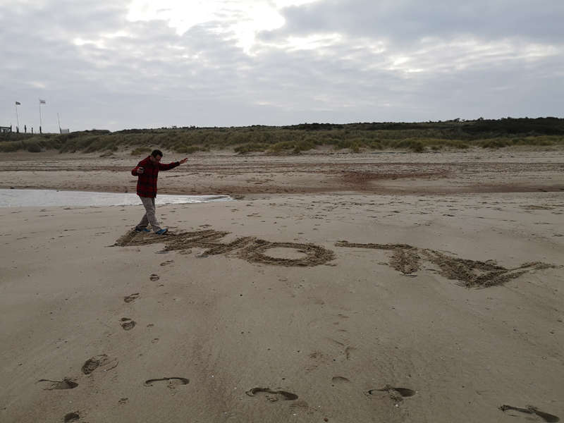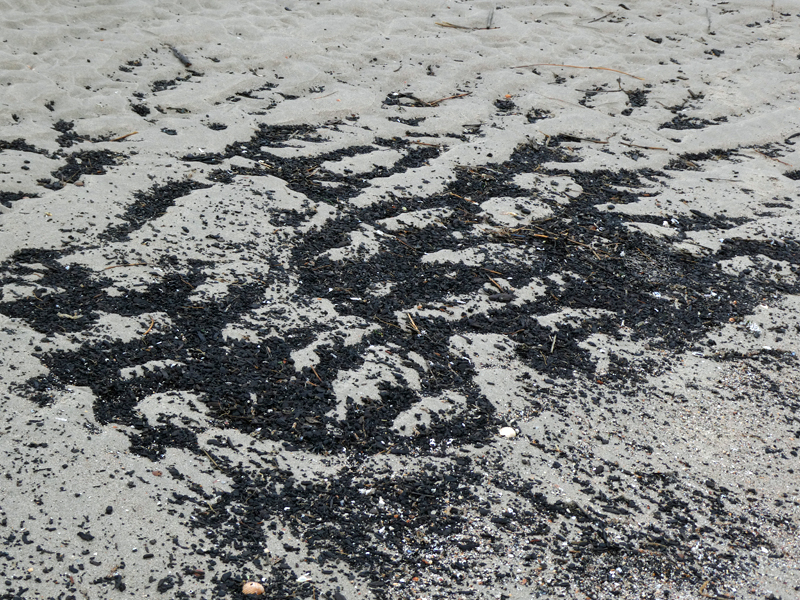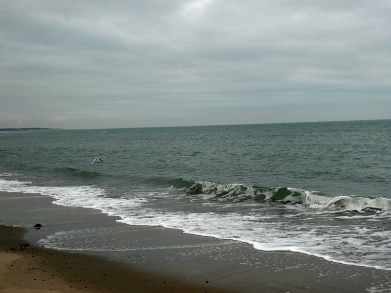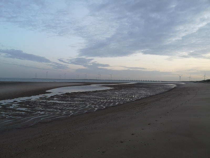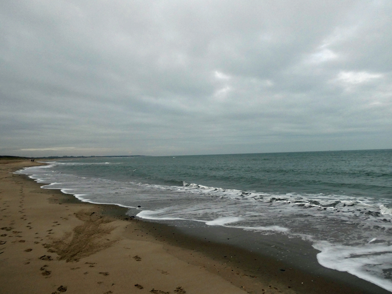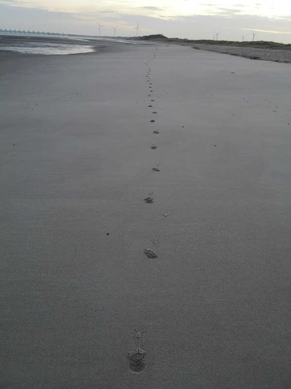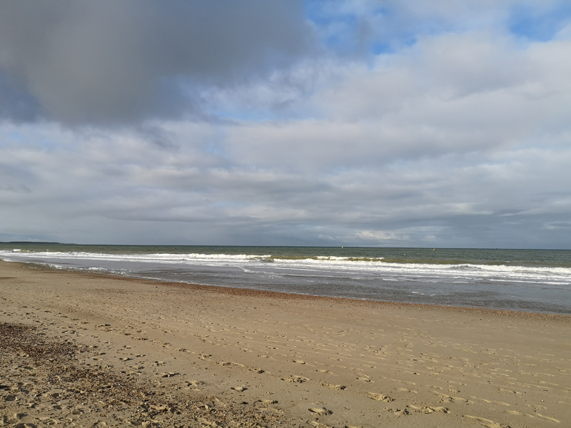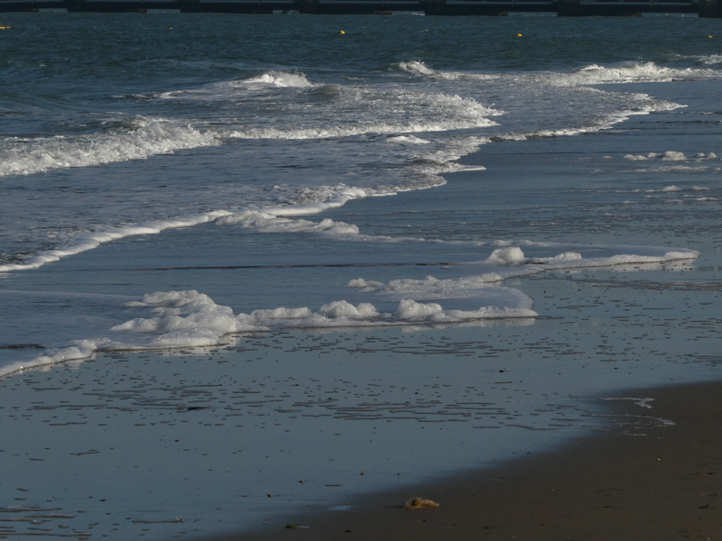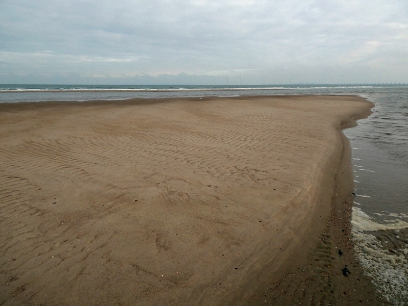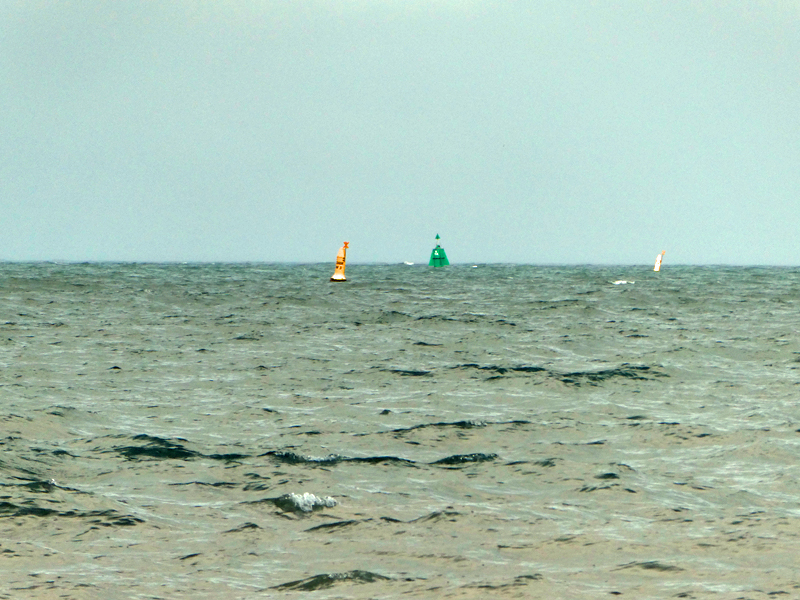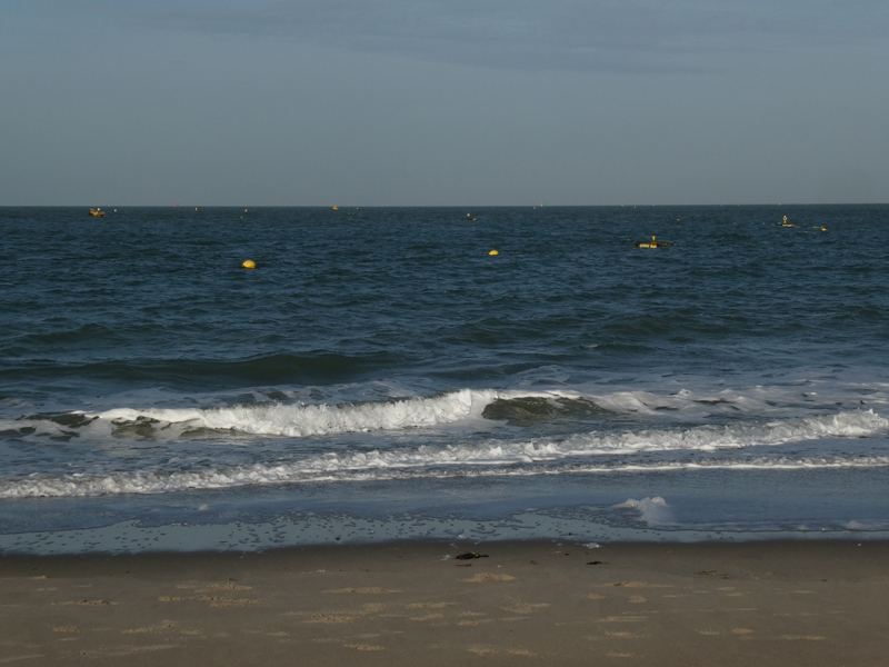 Sonntags ist wohl Angeltag. Jedenfalls war die front row strikt in Anglerhand, was jeder Strandgänger ohne Angel respektierte, kaum ein Durchkommen für die Fische. Im weiteren Verlauf unserer Strandrunde kamen wir an ordentliche Sandbänke, die gerade noch durch die aufkommende Flut zu sehen waren – und 5 Minuten später verschwunden.