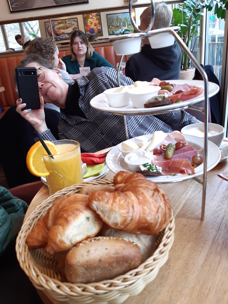 Fensterblick 9:38hall you need is loveFrühstück im Extrablatt – noch was neues!schick!gestärkt ging es dann in Sachen Roter Faden wieder rausMarktkirche, mit auf dem Kopf stehenden Hexenstern?überall Einhörnernach einer halben Stunde waren wir durchgefrorenTOLL!Frühschoppen, es ist 11:56hüber den Amalfi-Zitronen liegen getrocknete Kiwis und Erdbeerendiese Farben …