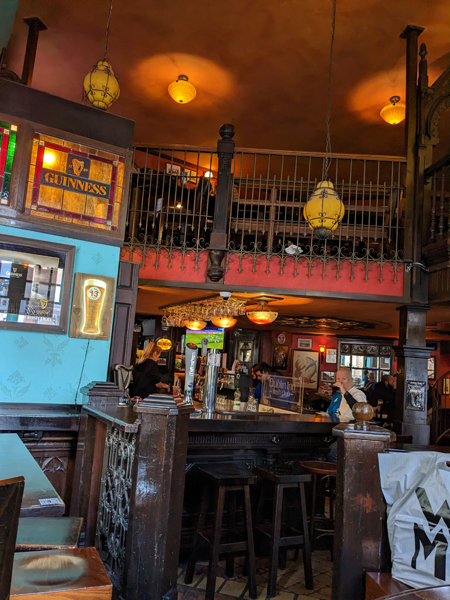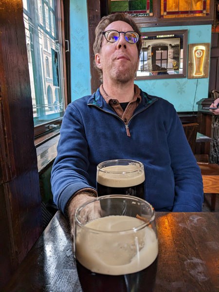 Schneesturmalso verkrochen wir uns sicherheitshalber im Dublin Innpöh, jetzt wieder Sonne …aber: bei ähnlicher Wetterlage gab es schon mal ein schweres Unglück!er sgat, er guckt die schöne Decke …die da!dbei spielten „da oben“ auch Irland gegen Italien RugbyVW-Tower unweit des Hotelswohlverdientes Zimmer-Picknickcomme d’habitude