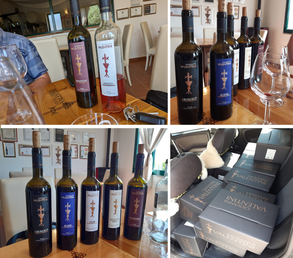 Nicht schlecht, zumindest der rote … aber bevor wir da dann richtig eingekauft haben, hatten wir noch eine Alternative, die uns dann so richtig überzeugte. Hier also die gelungene Weinprobe bei Valentinis (die hätten auch Ferienwohnungen …). Aber es war auch so gefährlich genug, Resultat, 13 Kartons à 6 Flaschen! Kriegt man übrigens auch mit wenig Aufschlag im Internet…