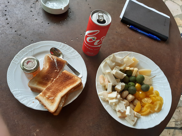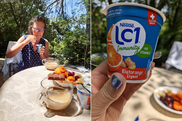 Erstmal Kaffee trinken und Zeitung lesen! Dann Wein für die nächsten Tage besorgen!