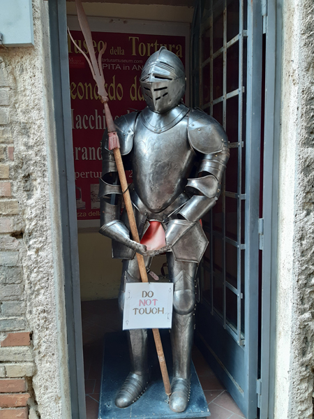 In der Kirche di Santa Maria Assunta bekam P mangels geziemendem Beinkleid eine Schamschürze verpasst – ganz großes Kino! Allerdings gab es noch ein paar Frauen, die derart ausstaffiert wurden, manche wegen nackter Schultern, und manche eben wegen unbedeckter Knie …