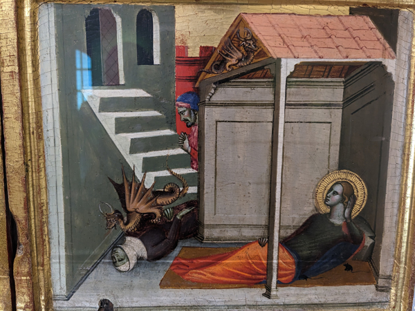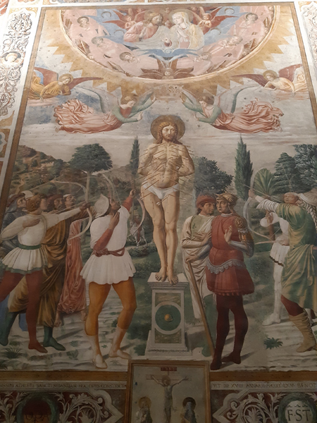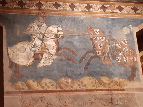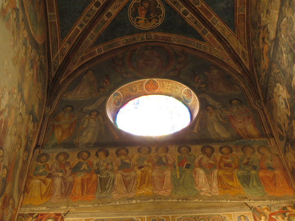 Alsdann machten wir uns an die Turmbesteigung, wieder gab es im Untergeschoss Heiligenbildnisse und Gemälde und großteils angefressene Fresken.