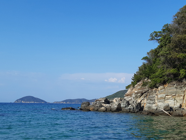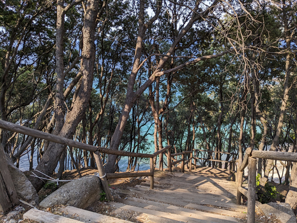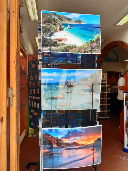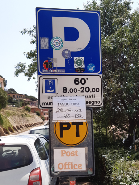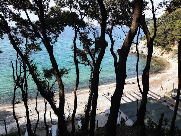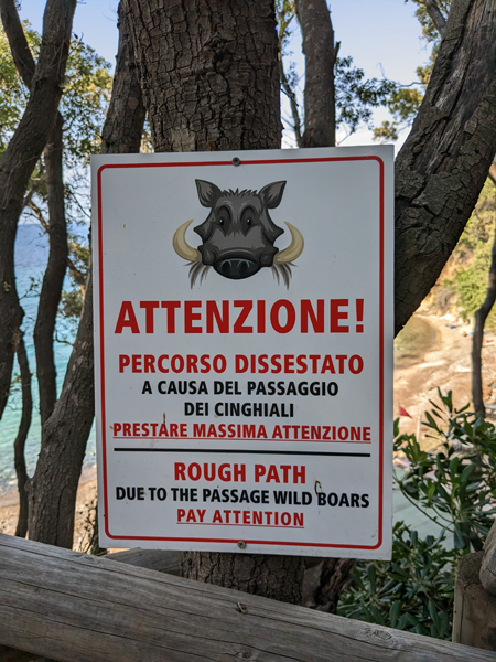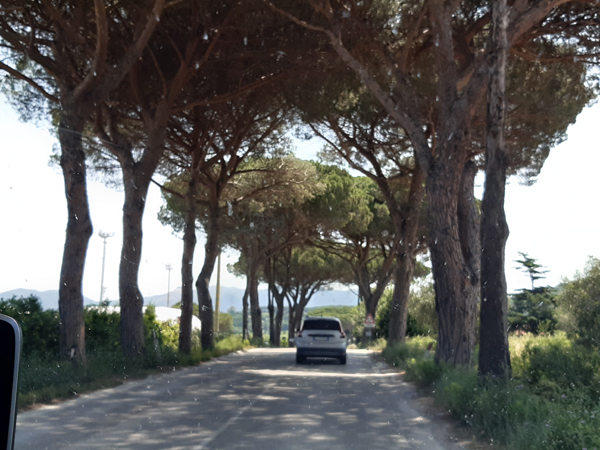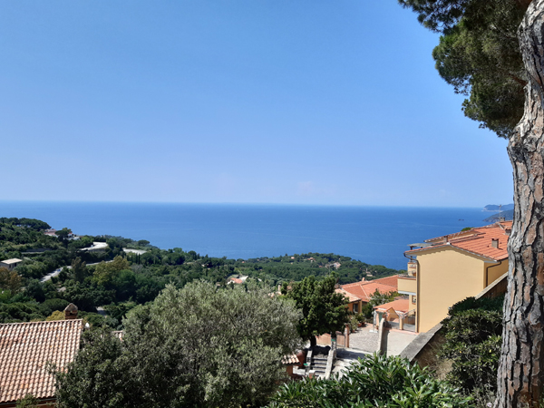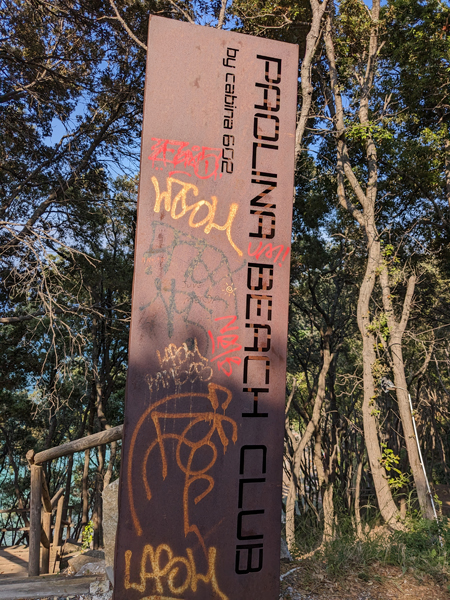 Der Plan war, zum Hafen zurückzufahren und dort noch etwas Flair zu schnuppern. Gefunden haben wir dann unterwegs auf der kurvigen Via delle Mimose (harharhar!) die Spaggia della Paolina, einen kleinen Strand mit Parklücke und Beach-Club – von dem wir aber dann Abstand genommen haben. Also vom Beach-Club, am Strand waren wir wohl.