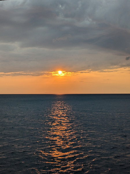 Geheimtipp, näheres siehe im Kapitel „Agent Orange“pole positionetwas düstere Heimfahrt, aber wir haben auf dem Hinweg ja schon „alles“ gesehen.Okay, nicht düster, sondern romantisch … auch wenn die Frisur was anderes schreitdiese Überfahrt hat sich für die Reederei irgendwie nicht gelohnt …zuhause gab es dann noch leckere dolce aus dem Hause pomodorino