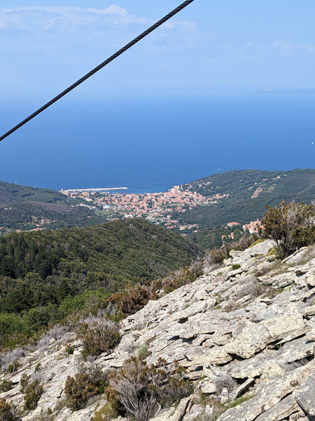 Schon wieder so ein Angstgegner für die nicht schwindelfreien Touris … die Seilbahn hoch zum 1019 m hohen Monte Capanne im Westen der Insel.