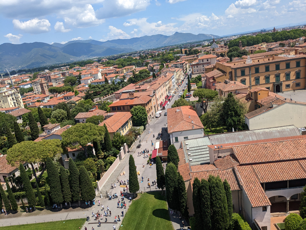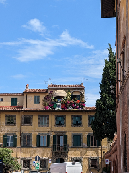 parken in schöner Umgebung nebst SchattenWhiskyladen als Wegmarke zum Parkplatzdas erklärt, wieso viele Einheimische so gerne ins Englische wechseln, wenn man als Tourist italienisch nur radebrechtPiazza dei Cavalieri mit diversen Hochschulenman nähert sich dem touristischen Zentrum