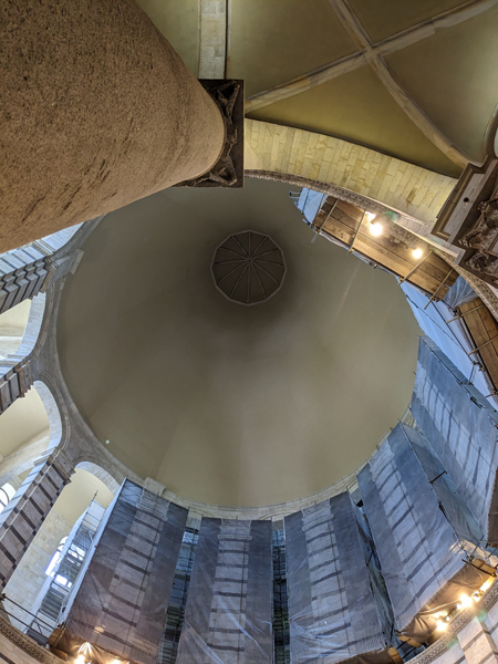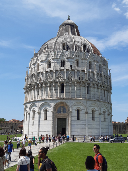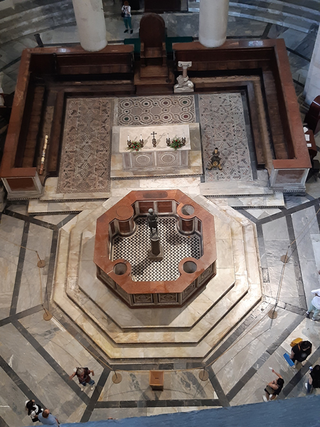 So ein Pisa ist natürlich auch außerhalb der Saison gut besucht, deswegen konnten wir uns vor der Turmbesteigung mit präzise vorgebuchtem Zeitfenster (Viertelstundentakt) auch noch das Baptisterium anschauen: