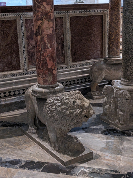 ist ja wie in Hannover, was müssen die armen Löwen immer abkönnen, entweder sie sind von Säulen durchbohrt oder sie tragen die Last derselbenwenn der runterkommt …erzbischöfliche Gebeine
