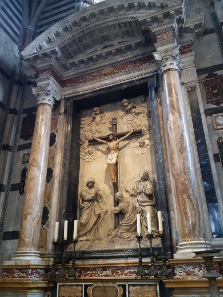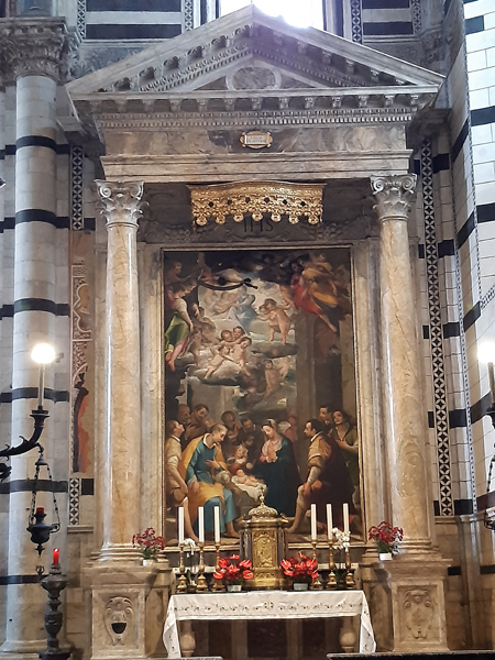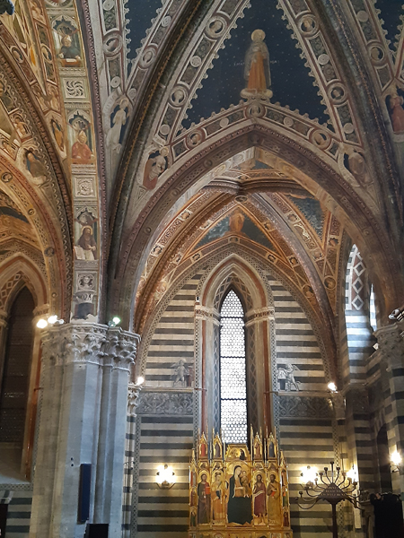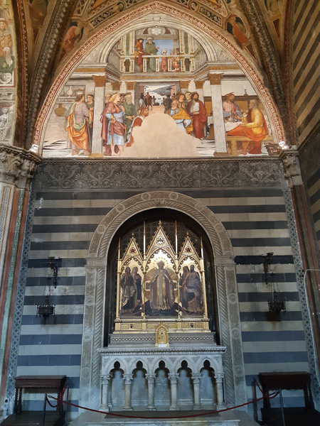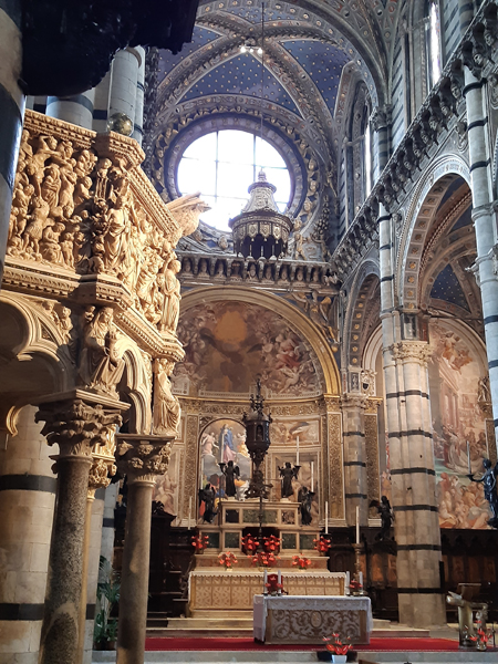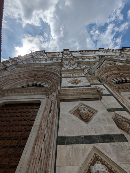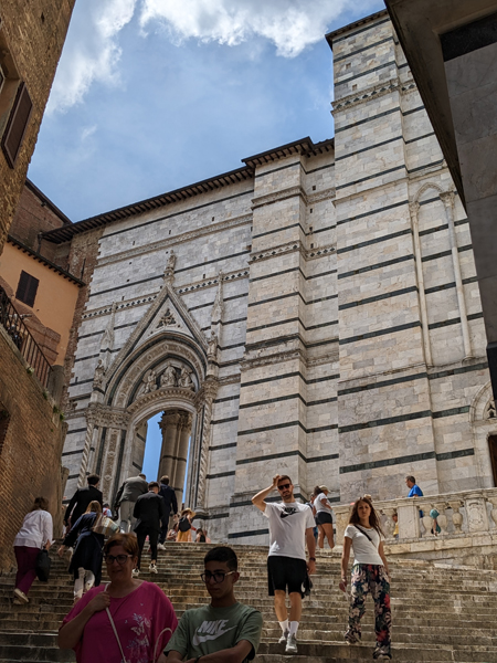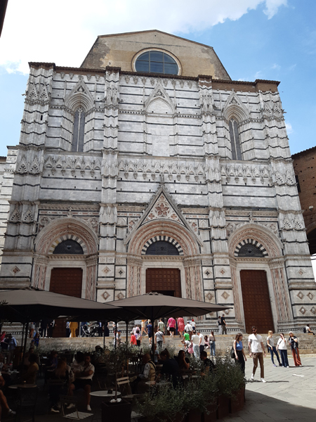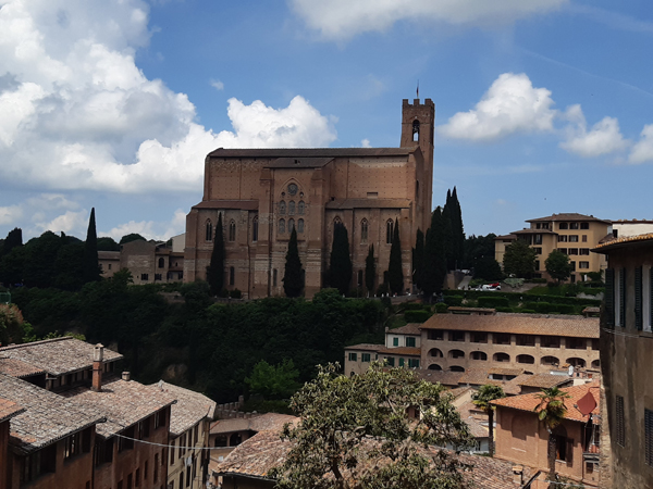 Auf dem Weg vom Casale nahe Massa Marittima zur 2. Unterkunft, dem Borgo Divino nahe Florenz, machten wir noch in Siena Halt. Ein überaus lohnender Abstecher, P kürte den Innenraum des Doms (natürlich Cattedrale Metropolitana di Santa Maria Assunta) gar zum schönsten der Toskana. Davor gab es aber noch anderes zu begucken, die Kirche San Domenico z.B.: