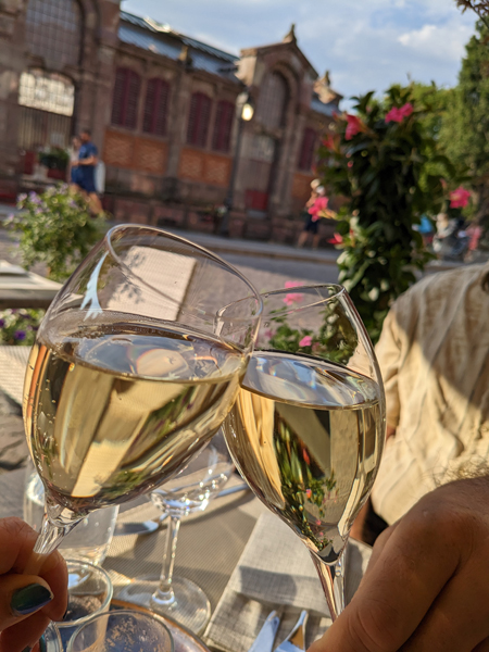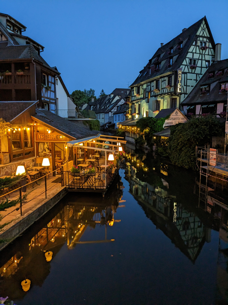 Colmar – da weiß man, was man hat. Nämlich eine günstig gelegene und bepreiste Unterkunft mit noch 5cm Höhenluft in der Tiefgarage und – bien sûr – das löbliche ‚Trois Poissons‘, wo wir das Abschluss-Dinner dieses Urlaubs zelebrierten.