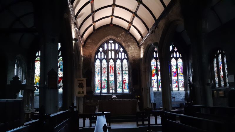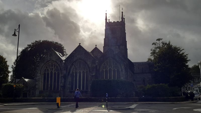 So ein entzückendes Städtchen, und als P dann für T den Fremdenführer spielen will, findet sie alles so schrecklich unprätentiös … Aber die Stimmung war auch etwas gedämpft, da wir bzw. der Panda gerade eben noch mit einem Reifen im Grab stand. Tatsächlich haben aber auch im beschaulichen Dartmoor die letzten 6 Jahre Spuren hinterlassen und die vielen kleinen Einzelhändler, die früher die Straße säumten, gibt es nicht mehr. Dafür fand T die Kirche schön, derweil P den heute etwas unausgelasteten Höllenhund im Kirchgarten bändigte.
