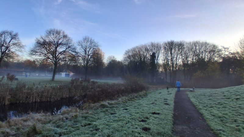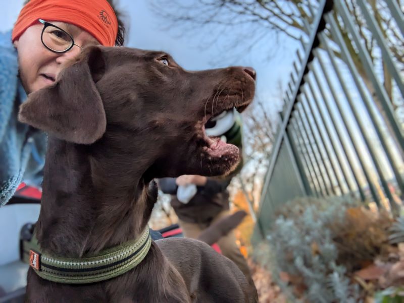 Geschlafen haben wir erwartungsgemäß ordentlich und die Dusche war auch prima. Bei klarem frostigen Wetter ging es dann erstmal noch in den nahen Park. Da haben wir echt immer ein Glück, dass es so nah eine Hundeerleichterungsmöglichkeit gibt.