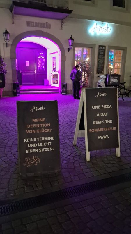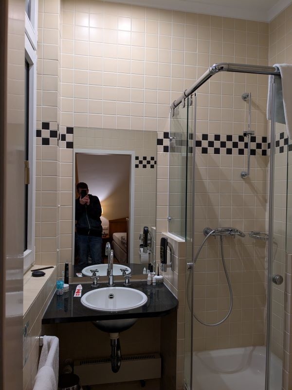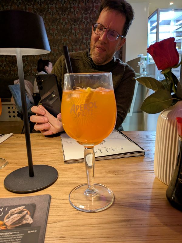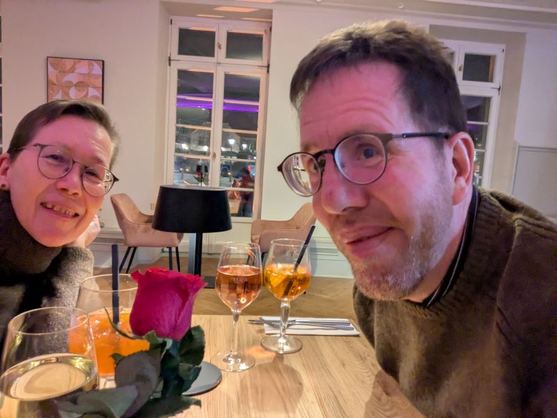 Das Celine Hotel-Restaurant gegenüber vom Schloss, in dem auch die Messe stattfand, war richtig toll – mit dem kleinen Wermutstropfen, dass für spätnachts und frühmorgens keine offizielle Pipi-Fläche für den Hund zu finden war. Der Schlossgarten war über Nacht geschlossen und die vorher ausspionierte Mini-Grünfläche war im Grunde eine Gartenparzelle für die umliegenden Mieter. Im Sommer wäre es vielleicht auch gar nicht so schlimm gewesen. Aber im Winter mit einem g’schamigen Hund, der nicht gerne an der Leine pinkelt, sondern sich lieber etwas entfernt … Egal, die 2 Tage haben wir überstanden!