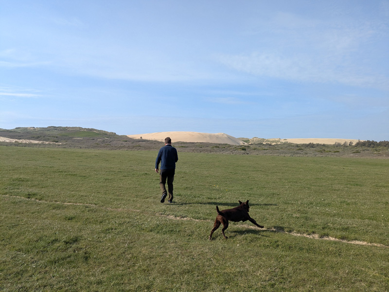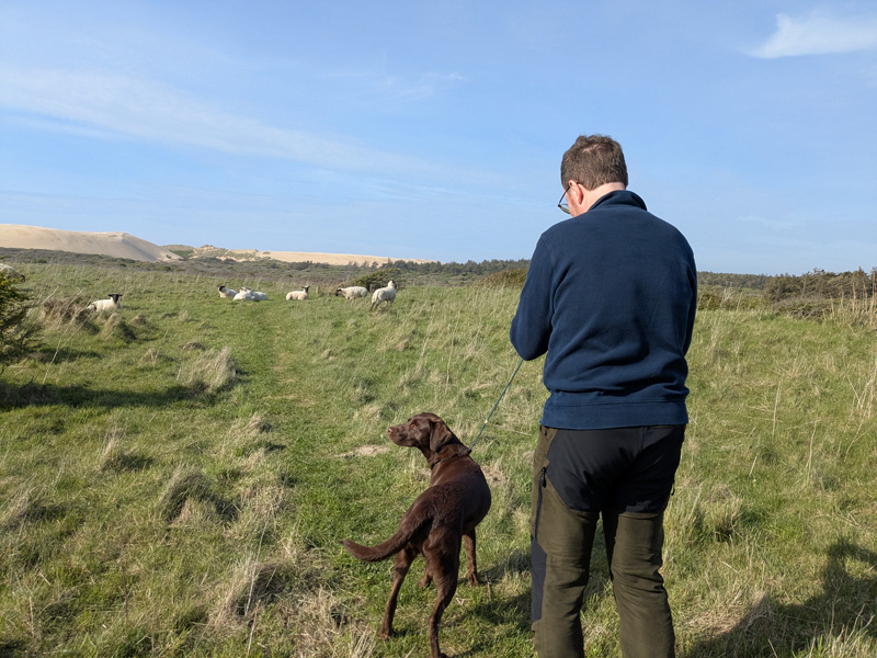 Ja, den Anmarsch hatten wir uns bequemer vorgestellt … Wenn man aus der falschen Himmelsrichtung kommt, deutet wenig auf die korrekte Routenführung hin … So zirkelten wir 2 mal über einen privaten Hof, liefen mit Hund über den Kirch-Friedhof in eine Schafherde hinein und schafften es am Ende dann über eine „landschaftlich ganz wunderbare“ halbstündige Wanderung, bei der man erst ganz am Ende den verdammten Leuchtturm am Horizon auftauchen sah … das war wieder so eine Strecke, die man sich hinterher gerne schallend lachend im GPS-Tracking hätte anschauen wollen. Egal, wir haben es geschafft und es war schön und wir waren fast alleine!