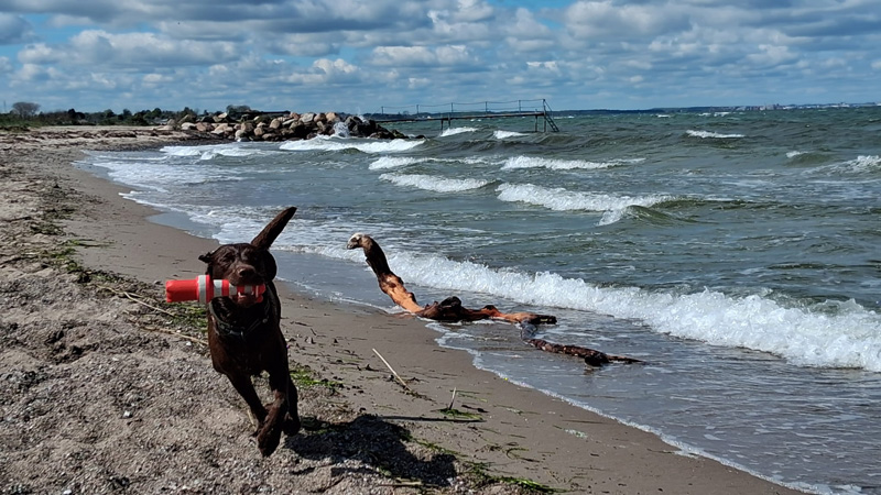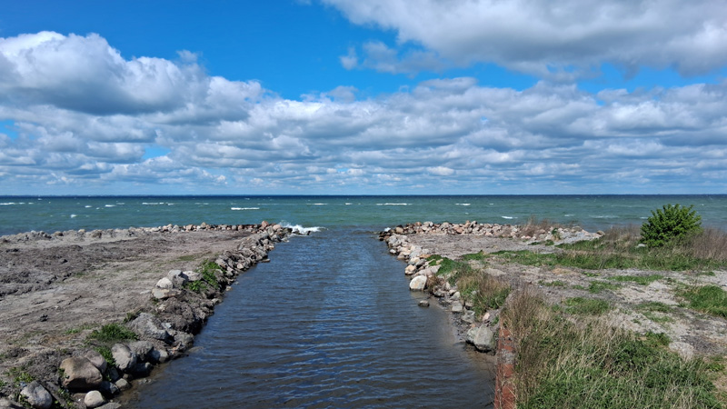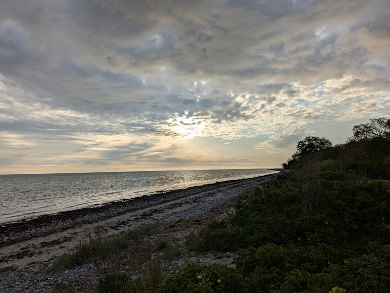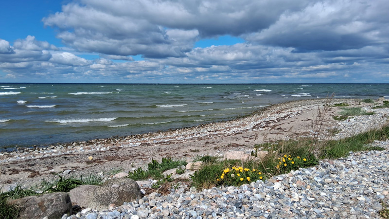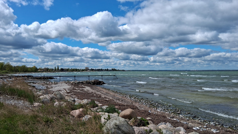 Der Weg zum Strand war herrlich einfach. Keinen Dünen, einfach nur topfebene Wohngegend und ein Stück durch ein Wäldchen. Und so steinig wie im Katalog abgebildet war es dann auch nicht.