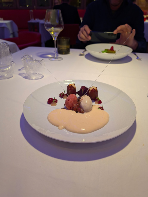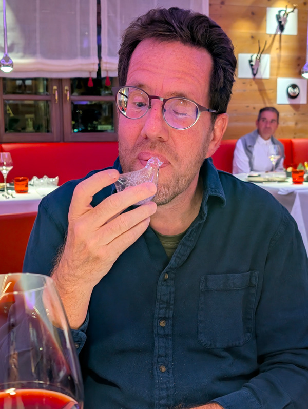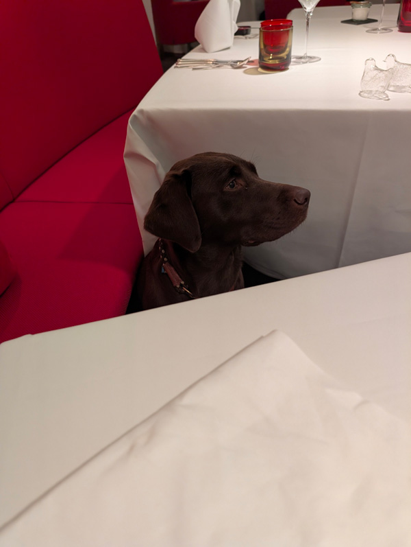 Vorfreude (oder auch Gier!)Glaskunstder „Wellness“-BereichViele Grüße (!) aus der Küchefragt uns nicht, wir haben es vergessen …aber unglaublich lecker!der eigentliche Küchengruß 10 min späterHund völlig ungerührt!in P erwachen Begehrlichkeitenendlich die reelen Vorspeisenoooooh …T, der alte Vogelfreund!neu arrangiert von P unter Zuhilfenahme der unbesetzten Nebentischeangemessene Weinbegleitungeiner der Hauptgängeder andereZwischen- oder Vor- oder wisst ihr was-Dessertdas HauptdessertTeil 1 der Nachdessert-Trilogie23Hund ist neugierigschnelle Nachtrunde